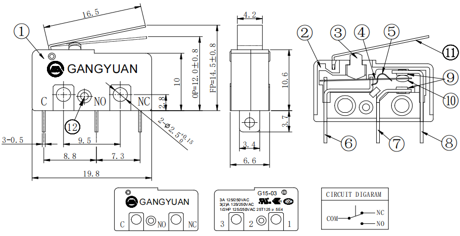 Saplı bu mikro şalter, küçük ev aletleri (kahve makineleri, fırınlar gibi), manuel/mekanik tetik kontrolü gerektiren elektronik aletler veya ekipmanlar için uygundur, küçük ve orta akım devrelerinin açma-kapama anahtarlama ihtiyaçlarını karşılar.