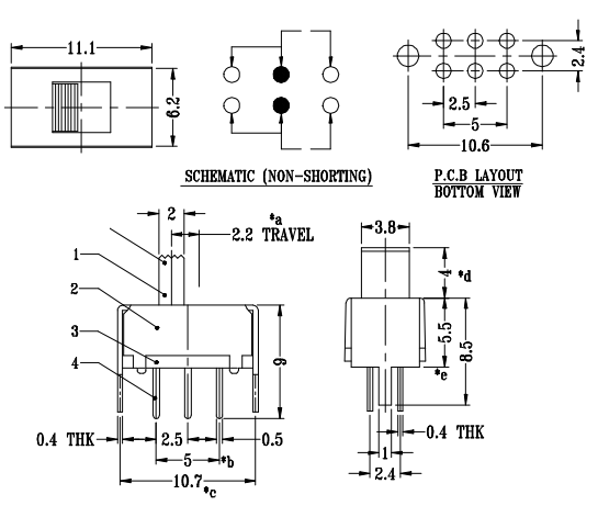 2P2T Kayar Anahtarlar, salınımlı bir işlemle iki bağımsız devre için (örneğin, açma/kapama, mod seçimi) iki durumlu anahtarlama sağlayan çift kutuplu çift atışlı (2 Kutup 2 Atış) bir kontrol anahtarıdır, çift devrelerin senkronize kontrolünü gerektiren senaryolar için idealdir.