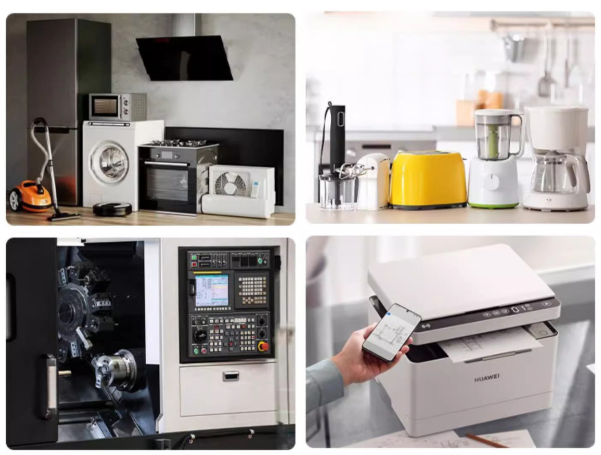 aletler/ölçerler, çeşitli elektrikli oyuncaklar, faks makineleri, ses ekipmanları, tıbbi ekipmanlar, güzellik ekipmanları ve diğer elektronik ürünler.