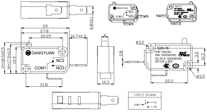 Bu mikro anahtar 16A akımı güvenli bir şekilde taşıyabilir, çeşitli elektrikli ekipmanların çalışma gereksinimlerini kolayca karşılayabilir ve devrenin düzgün çalışmasını ve güvenli kullanımını etkili bir şekilde sağlayabilir.
