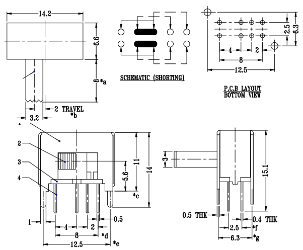 Kayar anahtar düğmesi: 8mm